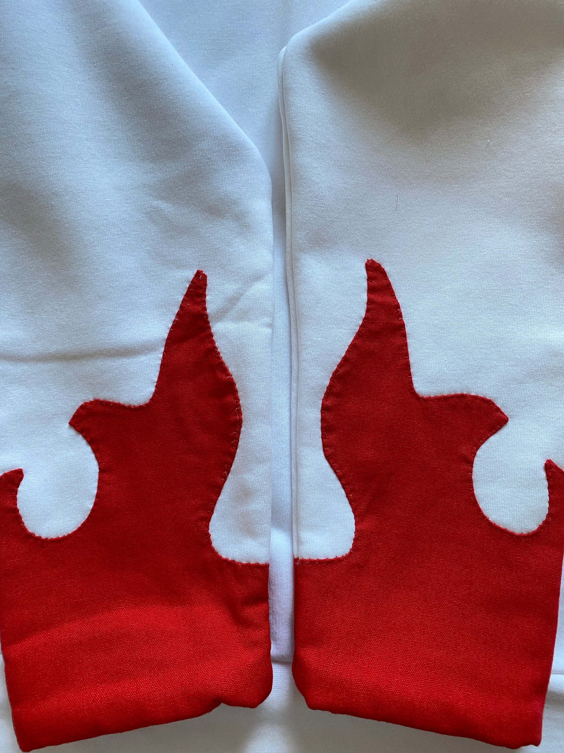 Flames are handstitched on with red linen.