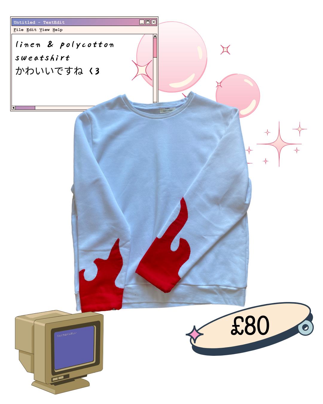 Flame sweatshirt, either wear oversized or a snug 2xL.