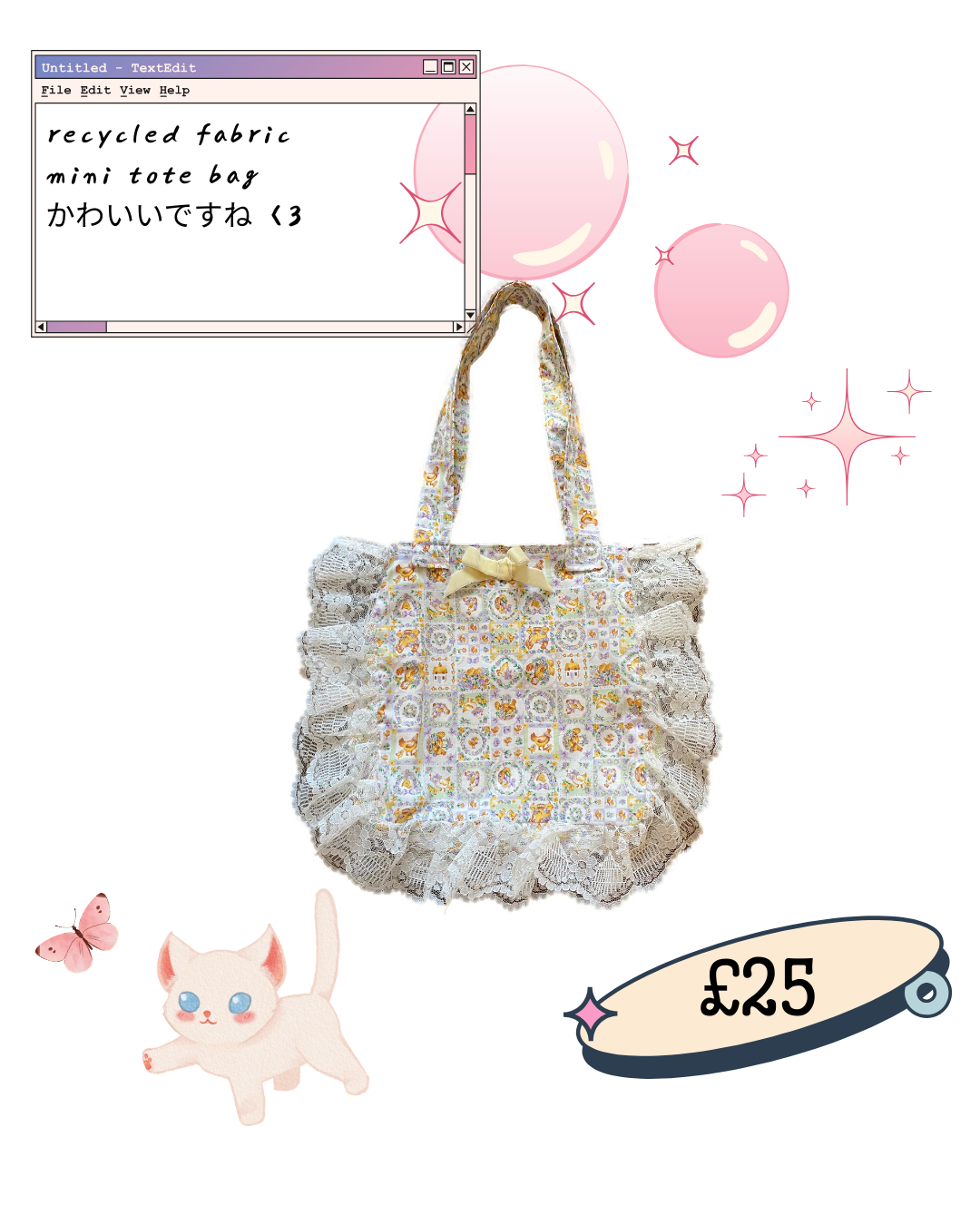 Recycled fabric, cottage core, lace trim, sustainable :)